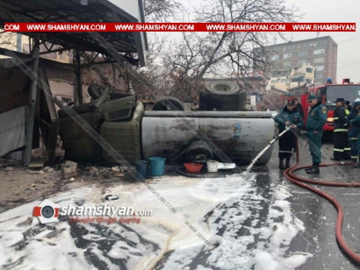 Դեպքի վայր են ժամանել նաև ճանապարհային ոստիկանության 1-ին սպայական գումարտակի 6-րդ դասակի ծառայողները՝ ավագ տեսուչ Լևոն Բադալյանի գլխավորությամբ։ Կողաշրջման արդյունքում դիզվաեռլիքի արտահոսք է սկսվել, և այս պահին հրշեջներն ու բենզալցակայանի աշխատակիցները փորձում են դադարեցնել արտահոսքը, ճանապարհին էլ հրշեջները կատարում են լվացման աշխատանքներ։ Ֆոտոլրագրողը հայտնում է նաև, որ քանի որ հավաքված են մեծ թվով հետաքրքրասեր քաղաքացիներ, իսկ վարորդներն էլ ծխախոտով են, ճանապարհային ոստիկաններն ու բենզալցակայանի աշխատակիցները նաև զգուշացնում են վարորդներին, որպեսզի դեպքի վայր ծխախոտով չմոտենան։ Ոստիկանությունը պարզում է վարորդի ինքնությունը։
