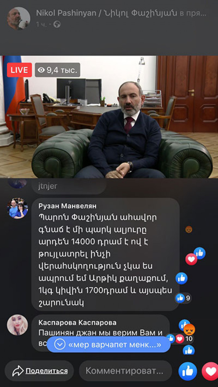 Ֆեյսբուքյան հարցուպատասխանի ընթացքում վարչապետ Նիկոլ Փաշինյանը