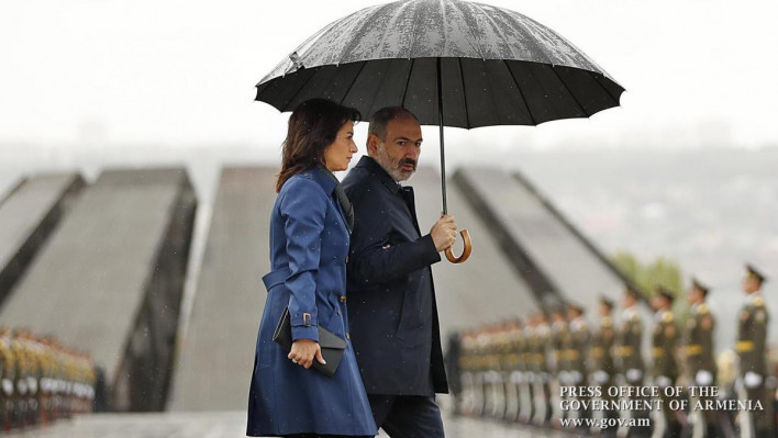 Վարչապետ Նիկոլ Փաշինյանը և տիկին Աննա Հակոբյանը Հայոց ցեղասպանության զոհերի հիշատակի 105-րդ տարելիցի կապակցությամբ այցելել էին Ծիծեռնակաբերդի հուշահամալիր: Աննա Հակոբյանը, հավատարիմ մնալով իր խոստմանը, կրկին նախընտրել է կրել հայկական արտադրության զգեստ: