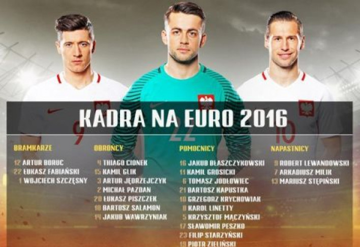 Ֆուտբոլի Լեհաստանի հավաքականի մարզչական շտաբը հրապարակել է թիմի վերջնական կազմը Եվրո-2016-ի համար, հաղորդում է Bild-ը: