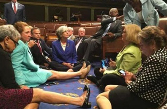 BBC-ն հայտնում է ,որ ԱՄՆ Կոնգրեսում Դեմոկրատական կուսակցության անդամները հրաժարվում են լքել Ներկայացուցիչների պալատի նիստերի դահլիճը՝ փորձելով այդկերպ կոնգրեսականներին ստիպել քվեարկել զենքի նկատմամբ վերահսկողություն սահմանելու օրենքի օգտին, գրեթե 100 օրենսդիր բողոքի ակցիա է կազմակերպել՝ պահանջելով ավելի խիստ ստուգել զենք գնել ցանկացողներին և արգելել զենքի վաճառքն ահաբեկչական գործունեություն ծավալելու մեջ կասկածվողներին: