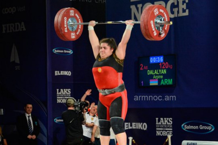 Աղջիկների մինչև 17 տարեկանների գերծանր քաշային կարգում Արփինե Դալալյանը երկամարտի 213 կգ արդյունքով նվաճել է ոսկե մեդալ: