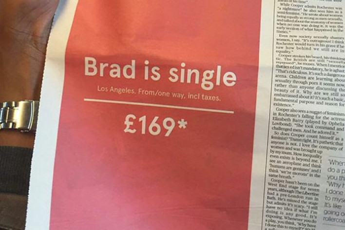 «Բրեդը ամուրի է»՝ հայտնում է գովազդը, և Լոնդոնից Լոս Անջելես թռիչքները արժեն 169 ֆունտ ստերլինգ: