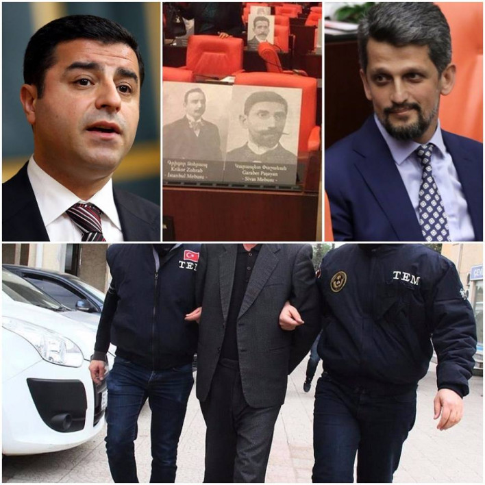 Աղմկահարույց ձերբակալություններ և վախի մթնոլորտ Անցյալ շաբաթվա վերջին Թուրքիայում սկանդալային իրադարձություններ տեղի ունեցան: Կալանավորվեցին քրդամետ Ժողովուրդների դեմոկրատական կուսակցության (ԺԴԿ) համանախագահներ Սելահադդին Դեմիրթաշը և Ֆիգեն Յուքսեքդաղը և կուսակցության ևս մի քանի պատգամավոր: Դիարբեքիրում իր տանը ձերբակալված Դեմիրթաշը տեղափոխվեց դատարան, որտեղ հրաժարվել էր հարցաքննությունից՝ հայտարարելով, թե «դատական թատերախաղի դերակատար չի դառնա»: Թուրքական դատախազության պարզաբանմամբ` ձերբակալությունները իրականացվել են ահաբեկչության դեմ պայքարի գործով հետաքննության շրջանակներում: Քրդամետ կուսակցության պատգամավորները մեղադրվում են «զինված ահաբեկչական խմբավորման անդամ լինելու, հանուն խմբավորման հանցանք կատարելու, ահաբեկչական խմբավորման քարոզչություն իրականացնելու» մեջ: Թուրքիայի վարչապետ Բինալի Յըլդըրըմը, խոսելով քուրդ պատգամավորների ձերբակալության մասին, հայտարարել է, որ իրականացված գործողությունները օրինական են: Նրա խոսքերով՝ ԺԴԿ պատգամավորները հրաժարվել են ներկայանալ դատարան և ցուցմունք տալ, այդ պատճառով էլ նրանց ձերբակալելու օրինական որոշում է կայացվել: Նման մեկնաբանություն է արել նաև Թուրքիայի արդարադատության նախարար Բեքիր Բոզդաղը: Նա նշել է, որ բոլոր քաղաքացիները օրենքի առաջ հավասար են, իսկ ձերբակալված պատգամավորները չեն ենթարկվել օրենքին: Մինչ թուրքական իշխանությունները օրինական և արդար են որակում ընդդիմադիր պատգամավորների ձերբակալությունը, Թուրքիայում և նրա սահմաններից դուրս այս գործողությունների շուրջ բողոքի մեծ ալիք է բարձրացել: ԺԴԿ պատգամավորները տեղի ունեցածը անվանել են «հարված ժողովրդավար քաղաքականության սրտին»: Կուսակիցների ձերբակալության մասին խոսել է նաև հայազգի պատգամավոր Գարո Փայլանը: Նա իր ֆեյսբուքյան էջում հայտարարել է պայքարը շարունակելու վճռականության մասին` իրականացվող գործողությունները համարելով «ընդդիմադիր ձայների լռեցում»: «Մեր ապրած տարին 1915-ն է, օրը՝ ապրիլի 24: Թույլ չենք տա, որ այդ ֆաշիստները ևս մեկ անգամ այրեն մեր երկիրը, մեր երիտասարդներին»,-գրել է պատգամավորը Twitter-ի իր էջում և հավելել, որ գլուխ չեն խոնարհելու՝ լինեն բանտում, թե ազատության մեջ։ Իշխանությունների ձեռնարկած խիստ քայլերի առիթով իր դժգոհությունն է հայտնել նաև երկրի առաջատար ընդդիմադիր ուժի՝ Ժողովրդա-Հանրապետական կուսակցության առաջնորդ Քեմալ Քըլըչդարօղլուն: Վերջինիս համոզմամբ` ընտրված պատգամավորները պետք է հեռանան միայն ընտրության միջոցով, այլապես սպանվում է ժողովրդավարությունը: Աղմկահարույց ձերբակալություններից հետո Ստամբուլում, Անկարայում, Իզմիրում և մի շարք այլ քաղաքներում ԺԴԿ-ի կողմնակիցները բողոքի ցույցեր, երթեր ու նստացույցեր են անցկացրել: Որոշ տեղերում ոստիկանությունը կոշտ միջամտություն է ցուցաբերել՝ օգտագործելով արցունքաբեր գազ: Դժգոհության ձայն են բարձրացրել նաև Եվրոպայում բնակվող քրդերը՝ բողոքի ցույցեր անցկացնելով մի շարք քաղաքներում՝ ի պաշտպանությունը կալանավորված պատգամավորների: Դեմիրթաշը չի դառնա «դատական թատերախաղի տիկնիկը» Ստամբուլի հայկական «Ակօս» թերթի փոխանցմամբ՝ քրդամետ «Ժողովուրդների դեմոկրատիա» կուսակցության համանախագահ Սելահաթթին Դեմիրթաշը կալանավորումից առաջ տեղափոխվել է դատարան, ուր չի պատասխանել իրեն ուղղված հարցերին։ Դեմիրթաշը նշել է․ «Առաջադրված մեղադրանքի հետ կապված հարցերին պատասխանել չեմ ցանկանում։ Փոխարենը՝ ինքս մի հայտարարություն կանեմ։ Մենք ժողովրդի ընտրված ներկայացուցիչներն ենք։ Մենք մեր անձը չենք ներկայացնում, այլ մեզ ընտրած զանգվածների