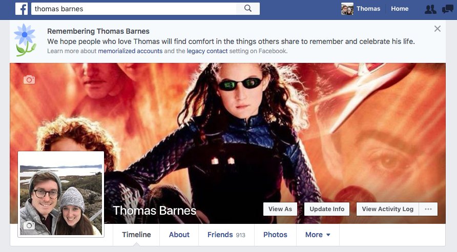 Facebook-ը թույլ է տալիս հավերժացել մահացած օգտատերերի հիշատակը, ինչը մյուս մարդկանց տալիս է հնարավորություն կիսվելու նրա էջում հիշողություններում։ Սակայն տեխնիկական խափանման արդյունքում հարյուրավոր օգտատերերի էջեր դարձել են «մահացածների» էջեր։