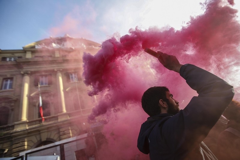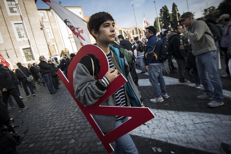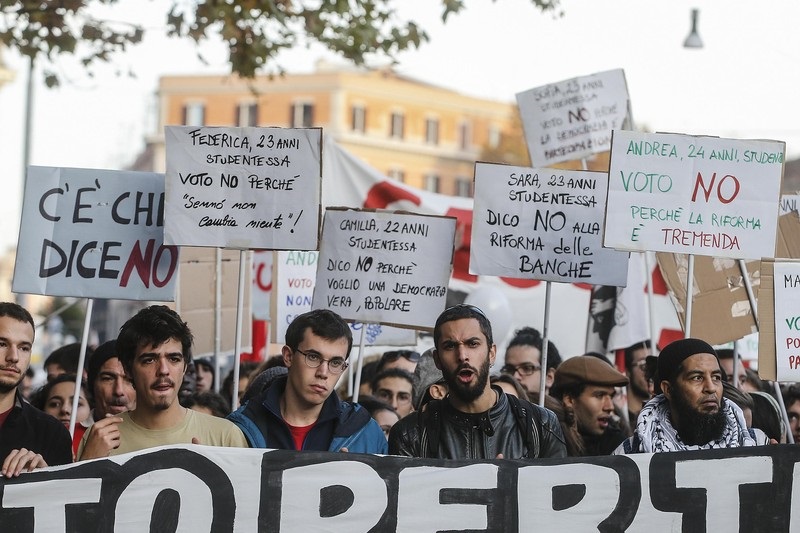Ցուցարարների ձեռքին եղել է «Ռենցի հեռացի՛ր» և «Մարդիկ ո՛չ են ասում սահմանադրական զզվելի փոփոխություններին» գրությամբ ցուցանակներ։