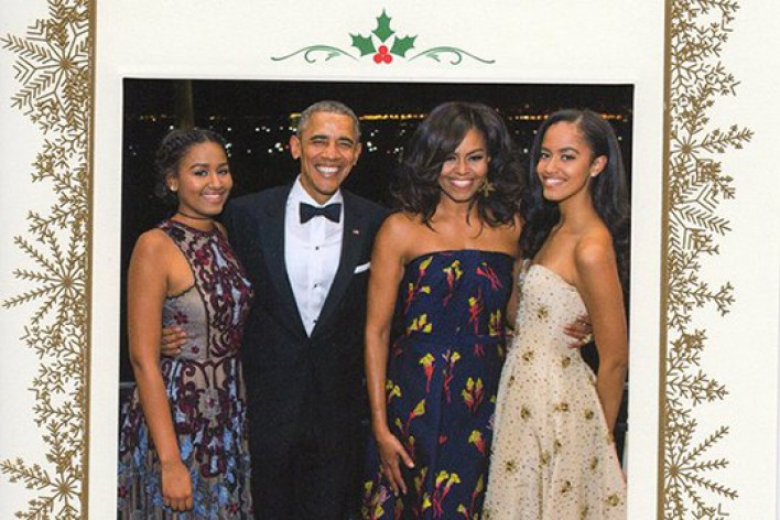 Սպիտակ տունը թողարկել է նախագահական ընտանիքի պաշտոնական սուրբծննդյան բացիկը ընկերների, կողմնակիցների և ԶԼՄ-ների ներկայացուցիչների համար։ Այս մասին հայտնում է Huffington Post-ը։