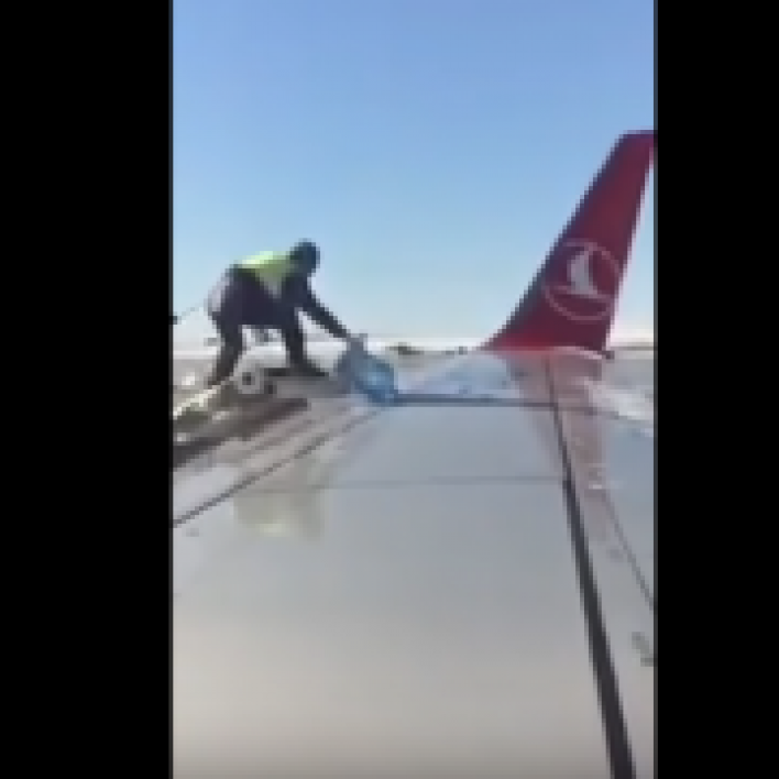 Օդանավակայաններից մեկի աշխատակիցները փորձել են ձեռքով լվանալ Turkish Airlines ավիաընկերության ինքնաթիռի թևը: