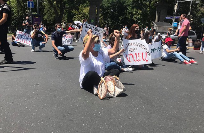Այնուհետև իրավիճակը էլ ավելի է լարվեց․ ծնողներն ու դիմորդները նստեցինն փողոցի մեջտեղում՝ պահելով սոցիալակն հեռավորությունը, սակայն ոստիկանները բռնի ուժ գործադրելով նրանց փորձում են հեռացնել տարածքից։ 2 անձ բերման է ենթարկվել Կենտրոնի ոստիկանություն։