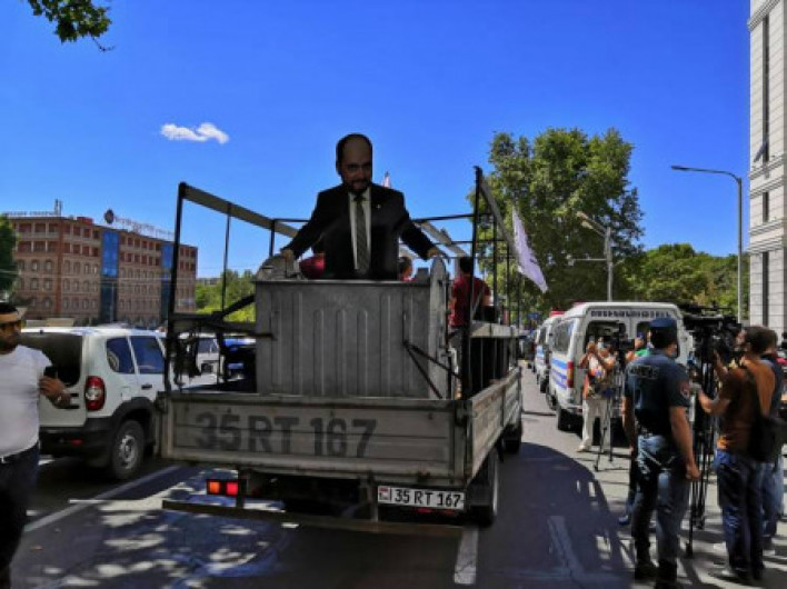 Սեպտեմբերի 1-ի հետմիջօրեին, օրինակ, Հանրապետության հրապարակում մի քանի պտույտ գործեց մեքենաների շարասյունը, որոնցից մեկին հարմարեցված բարձրախոսով հնչեցվում էր Արայիկ Հարությունյանի հրաժարականի պահանջը՝ մի շարք պատճառներով: Մեքենայի թափքում էլ աղբարկղ էր զետեղված, որի միջից հառնում էր ԿԳՄՍ նախարարի ստվարաթղթե մեծադիր պատկերը...