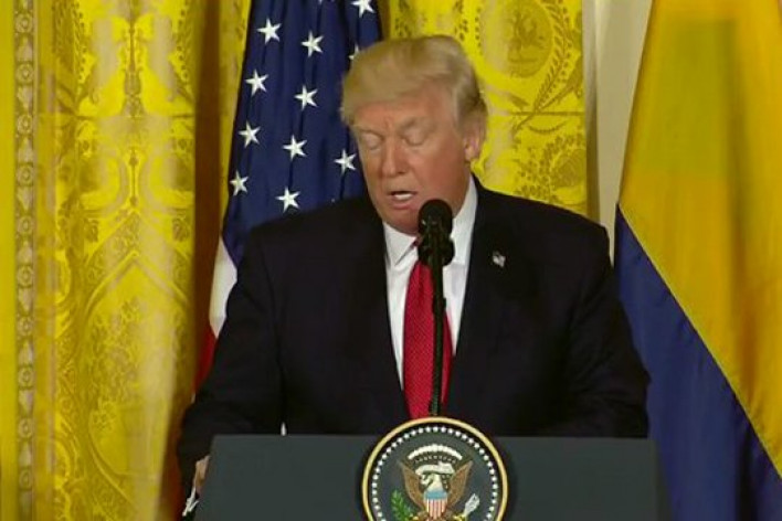 CBS LA հեռուստաալիքը Twitter-ի իր էջում մի տեսանյութ է հրապարակել,որտեղ ԱՄՆ նախագահ Դոնալդ Թրամփը կոլումբացի իր գործընկեր Խուան Մանուել Սանթոսոի հետ հանդիպման արդյունքներով մամուլի ասուլիսի ժամանակ խոսելով կոկաինի արտադրության կանխարգելման մասին, երկու անգամ արտասանել է «կակաո» բառը «կոկաինի» փոխարեն: