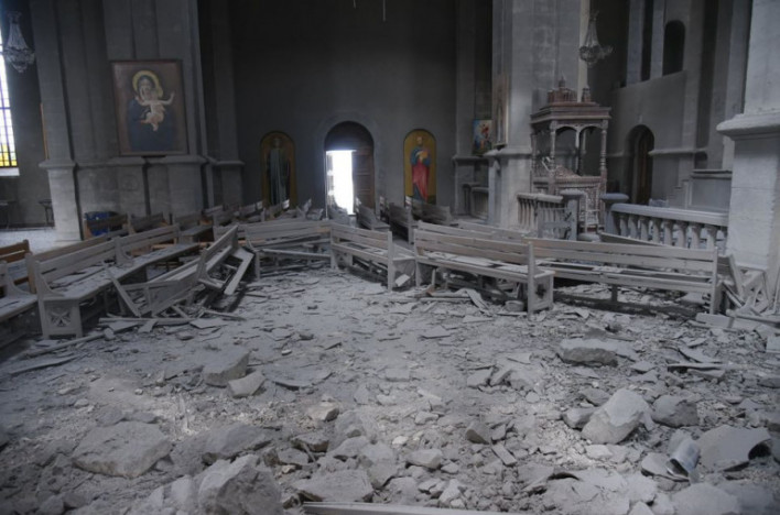 Նշենք, որ Արցախի տեղեկատվական շտաբն ավելի վաղ հայտնել էր, որ թշնամի Ադրբեջանը հարվածել է Շուշիի խորհրդանիշին՝ Ղազանչեցոց եկեղուցուն։