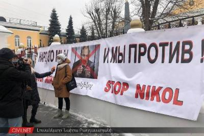 Ընդամենը մի քանի տասնյակ հայեր Ռուսաստանում ՀՀ դեսպանատան դիմաց, ինչ-որ պաստառներ էին փակցրել դեսպանության ցանկապատին՝ Փաշինյանին մերժող գրություններով, ստորագրահավաք էին անցկացնում՝ Փաշինյանի հրաժարականի պահանջով, եւ վերջ։