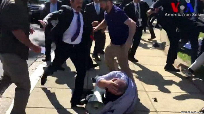 ԱՄՆ-ում թուրքական դեսպանության շենքի դիմաց հավաքված ցուցարարների վրա Թուրքիայի նախագահ Ռեջեփ Թայիփ Էրդողանի թիկնապահների հարձակման գործով 2 մարդ է ձերբակալվել: Այս մասին տեղեկացնում է Թուրքիայում փակված «Zaman» թերթի կայքը, որն իր գործունեությունը շարունակում է Հոլանդիայից, քանի որ Թուրքիայում արգելվել է: Ձերբակալվածներից մեկը ազգությամբ թուրք Էյուփ Յըլդըրըմն է, ով Էրդողանի թիկնազորի անդամների հետ միասին ծեծի էր ենթարկել խաղաղ ցուցարարներին: Նշվում է, որ ԱՄՆ-ում շինարարական ընկերություն ունեցող Յըլդըրըմը հարձակման ժամանակ գտնվել է առաջին շարքերում, ինչն արձանագրել են տարածքի տեսախցիկները: Կոնգրեսի արտաքին հարաբերությունների կոմիտեին դիմած տուժածներից Լյուսի Ուսոյանը ցուցմունք է տվել Յըլդըրըմի դեմ՝ հայտնելով, որը վերջինը անձամբ ծեծի է ենթարկել իրեն: Աղբյուրը նշումէ, որ տեսանյութերում նույնպես պարզորոշ երևում է, թե ինչպես է Յըլդըրըմը ոտքով հարվածներ հասցնում գետնին ընկած ցուցարարին: Կալանավորված 2-րդ անձի ինքնությունը դեռևս չի նշվում: Հողորդվում է, որ մայիսի 16-ին Թուրքիայի դեսպանատան դիմաց տեղի ունեցած դեպքերի վերաբերյալ առանձին հետաքննություններ է իրականացվում Վաշինգտոնի ոստիկանության, ԱՄՆ-ի արտգործնախարարության և ԱՄՆ-ի գաղտնի ծառայությունների կողմից: Հիշեցնենք, որ մայիսի 16-ին ԱՄՆ-ի հայ, քուրդ, ասորի և եզդի համայնքների ներկայացուցիչները ցույց էին կազմակերպել Վաշինգտոնում՝ բողոքելով Էրդողանի` ԱՄՆ այցի դեմ: Էրդողանի թիկնապահները հարձակվել էին խաղաղ ցուցարարների վրա և դաժան ծեծի ենթարկել նրանց: Միջադեպի հետևանքով վիրավորվել էր 9 ցուցարար: Աղբյուր` Ermenihaber.am
