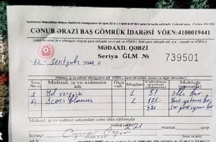 Ադրբեջանի պետական մաքսային ծառայությունը մեկնաբանել է Գորիս-Կապան ճանապարհի հատվածով անցնող տրանսպորտային միջոցներից ճանապարհային հարկի և այլ մաքսային վճարների գանձման վերաբերյալ տեղեկությունները, գրում է minval.az-ը: