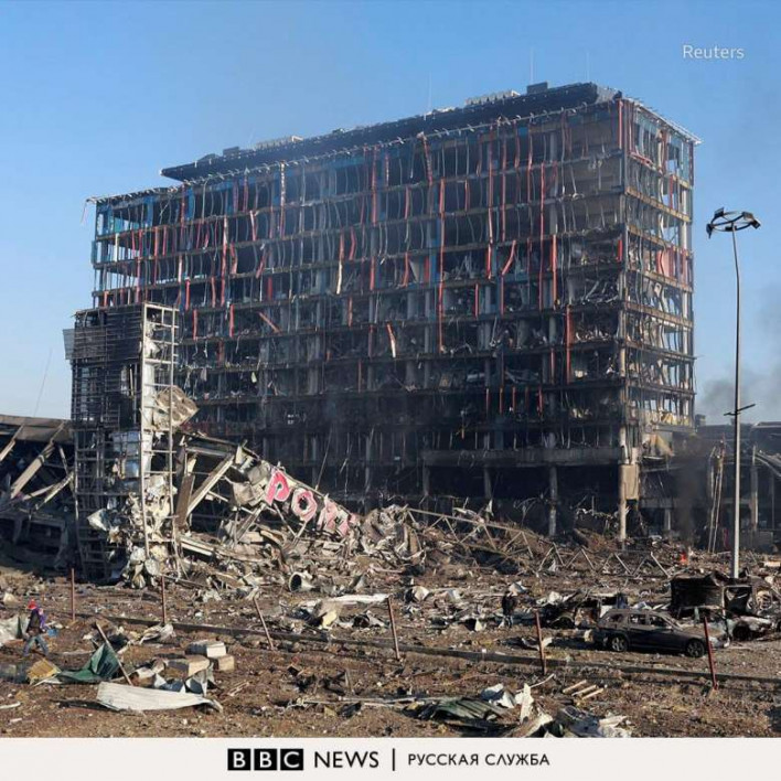 Մարտի 20-ի լույս 21-ի գիշերը ռմբակոծության արդյունքում Կիևում բնակելի շենքեր և առևտրի կենտրոններ են վնասվել։ Բիբիսին իր տելեգրամյան ալիքում տեղադրել է հրթիռակոծության արդյունքում ավերված առևտրի կենտրոնի լուսանկարները։