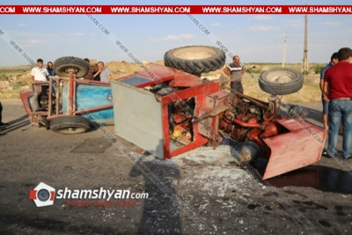 Խոշոր ավտովթար Արագածոտնի մարզում. բախվել են 24-ն ու տրակտորը. վերջինը կողաշրջվել է. կա 5 վիրավոր. ՖՈՏՈՌԵՊՈՐՏԱԺ