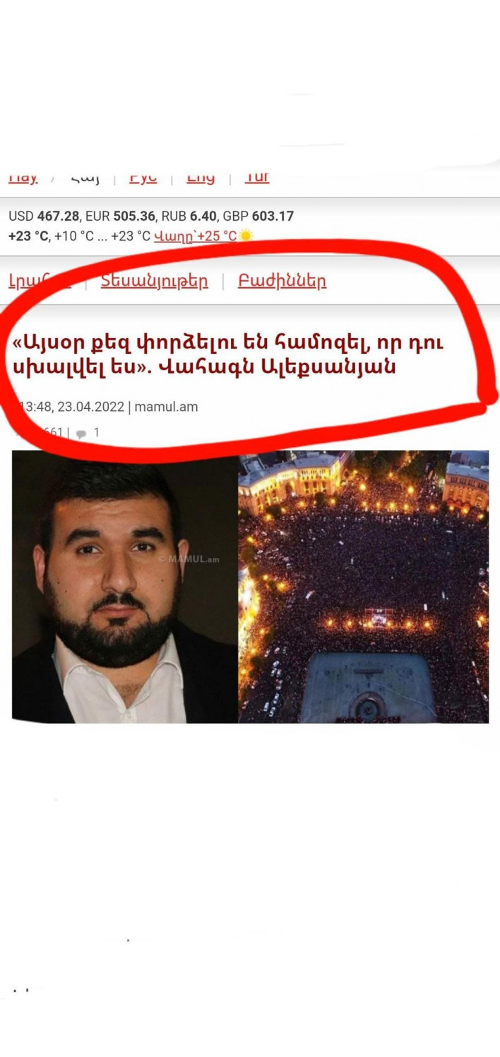 Հարազատ քայլիստներին "ուսապարկ" տիտղոսով անվանակոչած բավական պատկառելի գլխի տեր այս անձը դիմել է ժողովրդին... Սույն ստախոսը, ով կեղծ տեղեկություններ էր տարածում ԵՊՀ դեկաններից մեկի մասին,ժողովրդին ասում է, որ "այսօր նրան փորձելու են համոզել, որ նա սխալվել է"...