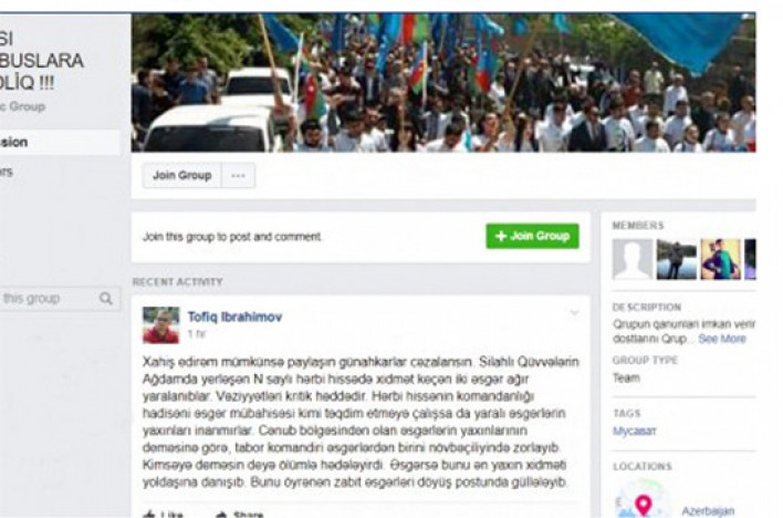 Voskanapat.info-ն տեղեկացնում է՝ Ֆեյսբուք սոցիալական ցանցի ադրբեջանական տիրույթի «Ազատություն քաղբանտարկյալներին» խմբում հուլիսի 20-ին ադրբեջանցի օգտատեր Թոֆիգ Իբրահիմովը ադրբեջաներենով գրառում է կատարել, որում մասնավորապես տեղեկացրել է, որ Աղդամի տարածաշրջանի՝ ադրբեջանական օկուպացիայի տակ գտնվող հատվածում տեղակայված ԱՀ ԶՈՒ զորամասերից մեկում ադրբեջանցի սպան մարտական դիրքում գնդակահարել է Հարավային շրջանից (Ադրբեջանում այդպես են կոչում այդ երկրի թալիշաբնակ տարածքները - խմբ.) զորակոչված իր իսկ բռնաբարած զինվորին և նրա ընկերոջը: Ադրբեջանցի օգտատերը մասնավորապես գրել է. «Խնդրում եմ, եթե հնարավոր է տարածե՛ք, թող մեղավորները պատժվեն։ Զինված Ուժերի Աղդամում տեղակայված թիվ N զորամասում ծառայություն անցնող երկու զինվոր ծանր վիրավորվել են։ Վիճակները ծայրահեղ ծանր է։ Թեև զորամասի հրամանատարությունը փորձում է դեպքը ներկայացնել որպես զինվորների միջև ծագած վեճ, զինվորների հարազատները չեն հավատում։ Հարավային շրջանից զորակոչված զինվորների հարազատների պատմածի համաձայն՝ գումարտակի հրամանատարը զինվորներից մեկին հերթապահության ժամանակ բռնաբարել է։ Որպեսզի ոչ մեկին չասի, նրան մահով էր սպառնում։ Իսկ զինվորը դեպքի մասին պատմում է իր ամենամոտ ծառայակից ընկերոջը։ Սպան, տեղեկանալով այդ մասին, զինվորներին մարտական դիրքում գնդակահարել է»։