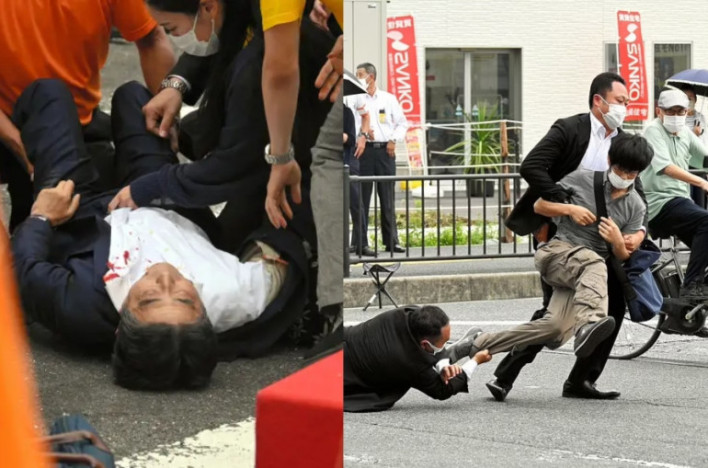 Ձերբակալված Տեցույա Յամագամին հայտարարել է, որ «դժգոհ էր նախկին վարչապետի վարած քաղաքականությունից» և «ուզում էր սպանել նրան»։ ԶԼՄ-ների տվյալներով՝ հարձակվողը 41 տարեկան է, նախկինում ծառայել է երկրի ծովային ինքնապաշտպանության ուժերում։
