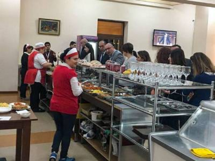 Մամուլի սրահում ժամանակավորապես տեղակայված բուֆետում, սակայն, միայն սուրճ եւ ֆաստֆուդային ուտելիք են տալիս։ Իսկ ճաշարանի հիմնական տարածքը կապիտալ վերանորոգվում է՝ խոհանոցից սկսած մինչեւ պատեր, կահ-կարասի, սպասքի թարմացում։ ԱԺ-ից մեզ ասացին՝ նախատեսում են մինչեւ սեպտեմբերի կեսերն ավարտել նորոգումը, սակայն չասացին, թե որքան գումար են նախատեսել նորոգման համար, եւ որ ընկերությունն է կատարում աշխատանքները։