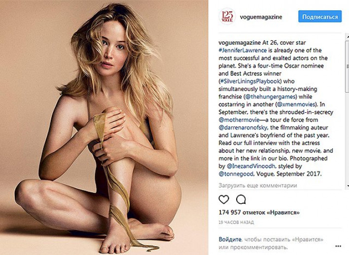 Vogue-ի ինսթագրամյան պաշտոնական էջում հրապարակվել է կադր ամսագրի համար Լոուրենսի ֆոտոշարքից: Ֆոտոշարքի հեղինակը Inez and Vinoodh լուսանկարիչների դուետն է: