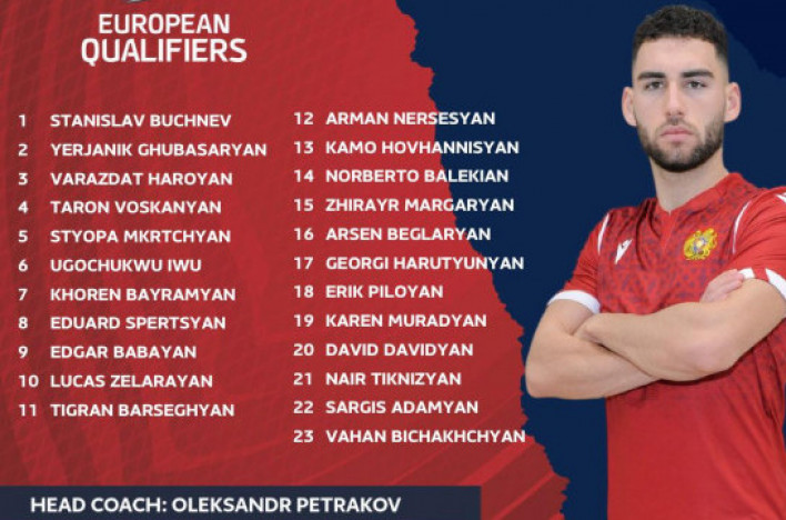 Հայտնի է Հայաստանի ազգային հավաքականի վերջնական հայտացուցակը Թուրքիայի դեմ խաղում