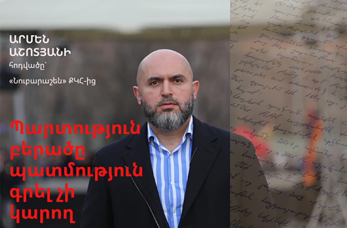 Հ.Գ. Փաշինյանը փորձում է պատմությունը սրբագրելով՝ իր ուզած պատմությունը գրել: Սակայն պատմությունը գրում են հաղթողները, իսկ Նիկոլը մեր ժողովրդի գլխին աղետ և ամոթ բերած պարտության և պատերազմի պատճառ հանդիսացող կապիտուլյանտ է: