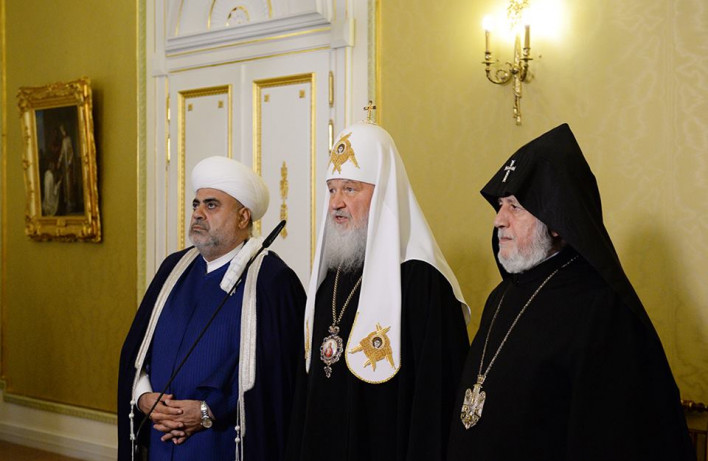 Ամենայն Հայոց Կաթողիկոս Գարեգին երկրորդի, Մոսկվայի և Համայն Ռուսիո Կիրիլ Պատրիարքի և Կովկասի մահմեդականների վարչության նախագահ շեյխ-ուլ-իսլամ Ալլահշուքյուր Փաշա Զադեի՝ Մոսկվայի Ս. Դանիելի պատրիարքանիստ վանքում տեղի ունեցած եռակողմ հանդիպումից հետո տարածաշրջանի հոգևոր առաջնորդները հանդես են եկել համատեղ հայտարարությամբ: Հայ և ադրբեջանցի հոգևոր առաջնորդները կրկին հանդիպեցին Մոսկվայում Մոսկվայի և Համայն Ռուսիո Կիրիլ Պատրիարքի հրավերով, որտեղ էլ քննարկեցին ղարաբաղյան հակամարտության խաղաղ կարգավորման ուղիները և փաստեցին, որ առանց որոնց հնարավոր չէ հասնել Կովկասում հաշտության և անվտանգության։ «Մենք հատուկ նշանակություն ենք ընծայում խաղաղարարական երկխոսության հետևողական զարգացմանը, բանակցությունների շարունակմանը և միջազգային հանրության միջնորդական ջանքերին, որոնք կօգնեն հասնել հակամարտության համապարփակ կարգավորմանը։ Համոզված ենք, որ տարաձայնությունները կարելի է հաղթահարել՝ հենվելով բարիդրացիության սկզբունքների և ավանդական կրոնների կողմից քարոզվող բարոյական արժեքների ՝ բարության, մերձավորի նկատմամբ սիրո, փոխադարձ ներողամտության և բարեգթության վրա։ Հայ և ադրբեջանցի ժողովուրդները մշտապես ապրելու են կողք կողքի, այդ իսկ պատճառով չկա այլընտրանք, քան խաղաղությունն ու համագործակցությունը։ Բազմաթիվ մարտահրավերների առջև մենք՝ մեր ժողովուրդների հոգևոր առաջնորդներս, պարտավոր ենք փնտրել համատեղ պատասխաններ», ասվում է համատեղ հայտարարությունում։ «Մենք, որպես հոգևոր առաջնորդներ, մեր կողմից պատրաստակամություն ենք հայտնում պաշտպանելու ղարաբաղյան հակամարտության հանգուցալուծմանն ուղղված խաղաղարարական նախաձեռնությունները։ Հոգևոր առաջնորդների եռակողմ հանդիպումների պատմությունը վկայում է նման շփումների դրական ներգործության մասին հակամարտության կարգավորման գործընթացի վրա, որը երբեք չպետք է վերաճի կրոնական հակամարտության։ Մենք մեծ հույսեր ենք կապում բանակցային գործընթացի հետ... Աղոթում ենք Բարձրյալին տարաձայնությունների հաղթահարման և չարիքից ու մեղքից մեր ժողովուրդներին պահպանելու համար։ Թող Կովկասի հինավուրց և սուրբ հողի վրա հաստատվի օրհնյալ խաղաղությունը, իսկ մեր երկրների ժողովուրդներն ապրեն հաշտ և խաղաղ, աստվածատուր բարոյական օրենքներով», ասվում է հայտարարությունում։ Տարածաշրջանի հոգևոր առաջնորդների հանդիպումը` Մոսկվայի և Համայն Ռուսիո Կիրիլ Պատրիարքի հովանու ներքո առաջինը չէ: Մոսկվան ևս մեկ անգամ այս հանդիպմամբ շեշտում է ռուսական նախաձեռնության վճռորոշ դերը: Այս հանդիպումները չկանխեցին ոչ ապրիլյան պատերազմը, ոչ էլ դրանից առաջ` վերջին մի քանի տարիներին Ադրբեջանի ռազմատենչ քաղաքականությանը: Ավելին` Ադրբեջանում գնալով ավելացավ ու արմատավորվեց հայատյացությունն ու պատերազմի քարոզչությունը: Իհարկե, դրանք նաև Ալիևի համար իշխանության պահպանման համար հարմար «մեթոդներ» են: Բայց Մոսկվան դա նկատո՞ւմ է, մեկ անգամ քննադատե՞լ է այս ընթացքում խաղաղ կարգավորումից ամեն քայլ հեռացող Ալիևին: Հետևաբար` ի՞նչ է տալու հոգևոր առաջնորդների հերթական հանդիպումը` Մոսկվայի և Համայն Ռուսիո Կիրիլ Պատրիարքի հովանու ներքո… Նպաստելո՞ւ է խաղաղ կարգավորմանը, խոչընդոտելո՞ւ է Ալիևի ռազմատենչ քաղաքականությանը... Բացառելու՞ է Ալիևի կողմից հայատյաց քաղաքականությունը... Թամար Բագրատունի