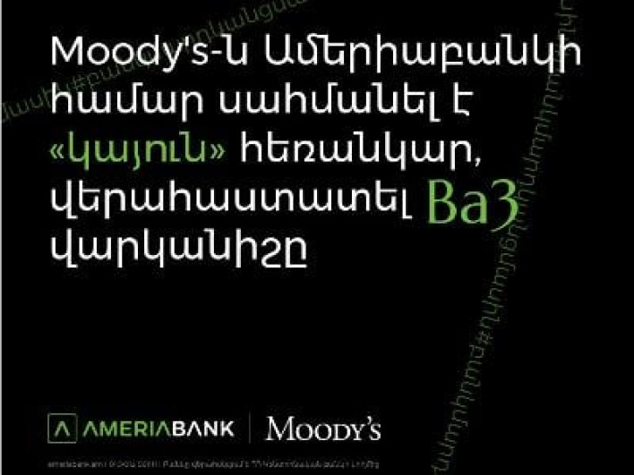 Moody’s վարկանիշային գործակալությունը Ամերիաբանկի վարկունակության բազային գնահատականը (BCA) b1-ից բարձրացրել է bа3` վերահաստատելով երկարաժամկետ ավանդների Ba3 վարկանիշը, և վերանայել է վերջինիս հեռանկարը` սահմանելով «կայուն»` նախկին «բացասականի» փոխարեն:
