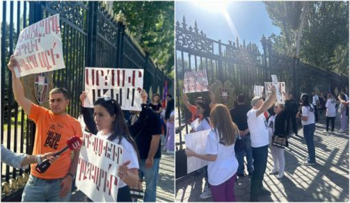 Նրանք ձեռքերին կան «Արցախը մենակ չէ», «Ինքնակազմակերպվիր, դո՛ւրս արի» գրություններով պաստառներ: