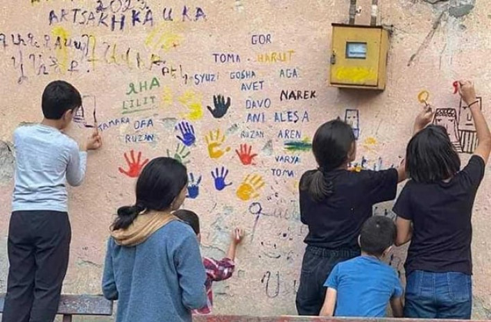 Գոռ, Հարութ, Ավետ, Ռուզան, Նարեկ. արցախցի երեխաները իրենց անուններն են թողնում շենքի պատերին