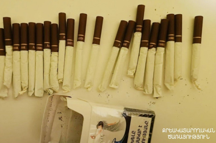 Վերջինիս անձնական իրերը խուզարկելիս՝ ծառայողները նկատել են, որ ծխախոտի տուփի գործարանային փաթեթավորումը խախտված է, իսկ տուփում առկա 21 գլանակները լցված են կանաչ, մանրացված բուսական զանգվածով։