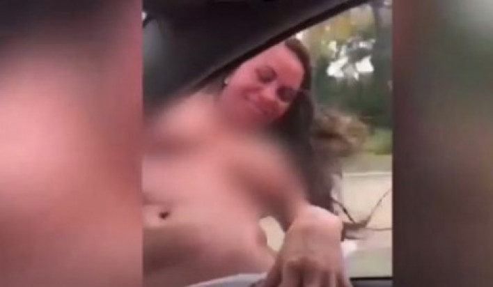 Միայն վարտիքով աղջիկը մարմնի կեսը դուրս է բերել մեքենայի պատուհանից՝ ցուցադրելով էրոտիկ շարժումներ: