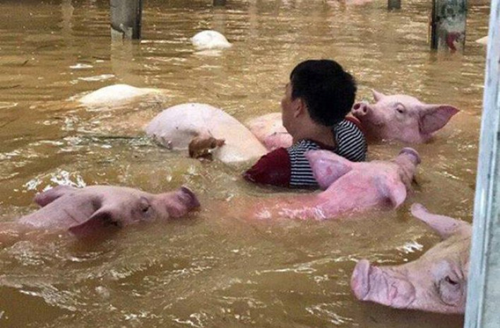 Վիետնամում մոլեգնող հեղեղումների հետեւանքով ջրի տակ է անցել Տխանխոա շրջանի խոզաբուծական ֆերման: Համացանցում հայտնվել է տեսանյութ, որտեղ կենդանիներն ամեն կերպ փորձում են ջրի երեսին մնալ: Հաջորդվել է փրկել միայն 100 խոզի, մնացածները՝ շուրջ 4 հազար գլուխ, խեղդվել են, հաղորդել է ՌԻԱ Նովոստին:
