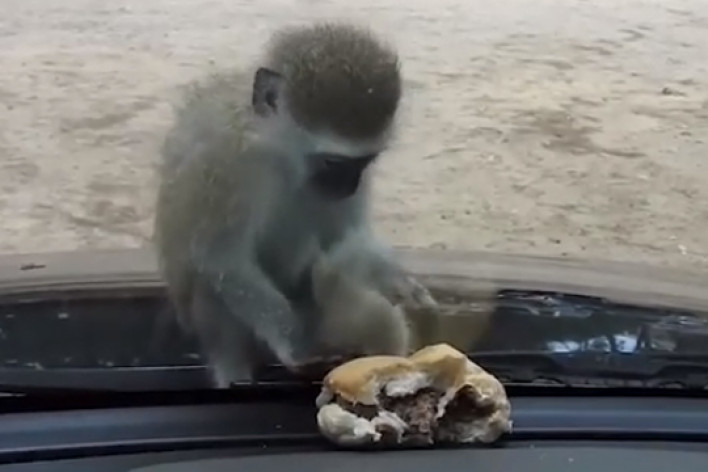 Daily Mail պարբերականի փոխանցմամբ, Հարավային Աֆրիկայի բնակիչը տեսանկարահանել է, թե ինչպես է կապիկը փորձում իրենից գողանալ համբուրգերը հենց մեքենայի միջից։ Գողությունը կանխել է դիմապակին, որի հետևում էլ գտնվել է համբուրգերը։