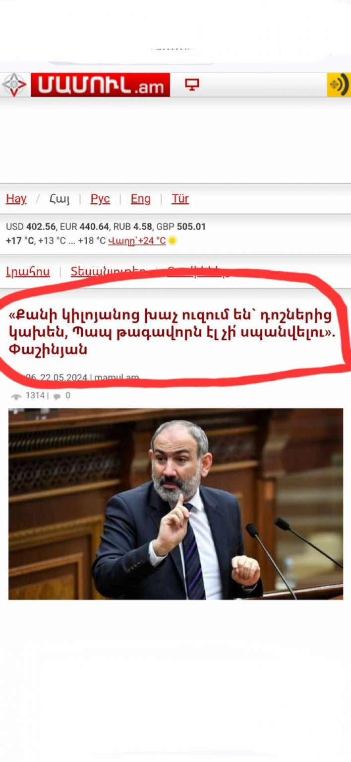 Իրեն Հիսուսի հետ համեմատող գյուղացի Վովայի ու, ըստ ասեկոսեների, հոգեկան խնդիր ունեցող գյուղացի Սվետիկի որդին`սույն շիզոֆրենիկ կապիտուլյանտ պարտություն կրածը, ում թուրքերն ամենօրյա ռեժիմով նվաստացնում և նսեմացնում են, ով հայտնի ստախոս ու մանիպուլյանտ է, այսօր կրկին իրեն համեմատել է ազնվական Արշակունյաց արքայատոհմի ներկայացուցիչ, Արշակ Բ֊ի և Փառանձեմ թագուհու որդու` Պապ թագավորի հետ, ով Ձիրավի ճակատամարտում հաղթանակած ռարած արքա էր... Նիկո'լ Անհող, ինչ ուզում ես արա, դու գեղցի դավաճան կապիտուլյանտ կաս ու կմնաս...Չէ մի չէ` Պապ թագավո՜ր... Դավաճան Նիկո'լ, դու նույնիսկ Վեստ Սարգիս չես...Ձգելով կարող ես հասնել մազութի Համոյին...