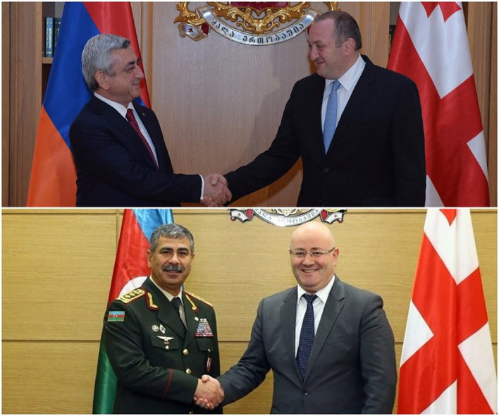 Նախօրերին ուշագրավ բանակցություններ են տեղի ունեցել Թբիլիսիում: Ճիշտ նույն օրը, երբ Ժնևում հանդիպում էին Սերժ Սարգսյանն ու Իլհամ Ալիևը՝ Ադրբեջանի պաշտպանության նախարար, գեներալ-գնդապետ Զաքիր Հասանովը պաշտոնական այցով ժամանեց Թբիլիսի։ Հասանովը մեկնել էր Վրաստան՝ մասնակցելու Վրաստանի, Թուրքիայի ու Ադրբեջանի պաշտպանության նախարարների եռակողմ հանդիպմանը։ Մինչ եռակողմ հանդիպումը, սակայն, Վրաստանն ու Ադրբեջանը քննարկել են ռազմական համագործակցության հարցը: Ադրբեջանի պաշտպանության նախարար Զաքիր Հասանովը Վրաստան կատարած այցի շրջանակներում հանդիպել է այդ երկրի զինված ուժերի Գլխավոր շտաբի պետ, գեներալ-մայոր Վլադիմիր Չաչիբայայի հետ։ Ըստ ադրբեջանական ԶԼՄ-ների՝ հանդիպմանը քննարկվել է ինչպես երկկողմ, այնպես էլ տարածաշրջանային ու միջազգային մակարդակներում Վրաստանի ու Ադրբեջանի միջև համագործակցությունը։ Կողմերը կարևորել են զինված ուժերի ղեկավար կազմերի, ինչպես նաև ռազմական փորձագետների փոխադարձ այցերի կազմակերպումն ու իրականացումը՝ ընդգծելով, որ դրանք օգտակար են ռազմական համագործակցության զարգացման համար։ Այնուհետև Հոկտեմբեր 17-ին Թբիլիսիում կայացավ Ադրբեջանի պաշտպանության նախարար Զաքիր Հասանովի և Վրաստանի ու Թուրքիայի զինված ուժերի Գլխավոր շտաբների պետեր Վլադիմիր Չաչիբայայի ու Հուլուսի Աքարի հանդիպումը։ Հանդիպմանը քննարկել են Վրաստանի, Ադրբեջանի ու Թուրքիայի միջև ռազմական համագործակցության հեռանկարները, տարածաշրջանային անվտանգությանն առնչվող հարցեր, տարածաշրջանի տնտեսական նախագծերը և այլն։ Փաստորեն, քննարկվել են երեք երկրների միջև ռազմական ոլորտում ներկայիս և ապագա համագործակցության հարցեր, տեղեկատվություն տարածվեց, որ հանդիպման արդյունքներով նախատեսվում է փաստաթղթի ստորագրում, ասված է հաղորդագրությունում: Մինչ այդ, Թբիլիսին ու Բաքուն քննարկել են երկկողմ ռազմական համագործակցության հարցեր: Թբիլիսիում գտնվող Ադրբեջանի պաշտպանության նախարար Զաքիր Հասանովը հանդիպել է վրաց պաշտոնակից Լևան Իզորիայի հետ։ Ըստ Վրաստանի ռազմական գերատեսչության տարածած հաղորդագրության, հանդիպմանը քննարկվել է տարածաշրջանային իրադրությունը։ Վրաց և ադրբեջանցի պաշտոնյաներն ընդգծել են, որ «նման հանդիպումները կարևոր նշանակություն ունեն իրենց երկրների համար սպառնալիք հանդիսացող միջազգային ահաբեկչության, ագրեսիվ սեպարատիզմի և այլ դրսևորումների դեմ ջանքերի միավորման գործում»։ Ըստ պաշտոնական հաղորդագրության, Զաքիր Հասանովը և Լևան Իզորիան համոզմունք են հայտնել, որ ռազմական ոլորտում համագործակցության հիմք են ստեղծում տարածաշրջանում անվտանգության ապահովման համար: Թուրքիա-Վրաստան-Ադրբեջան եռակողմ ձևաչափով ռազմական այդ համագործակցության շրջանակում, որի հիմքը դրվել է 2014թ.՝ Նախիջևանում, կողմերը բացի հանդիպումներից ու քննարկումներից նաև համատեղ զորավարժություններ են անցկացնում։ Վերջին անգամ երեք երկրների պաշտպանության նախարարները հանդիպել էին այս տարվա մայիսի 23-ին՝ Բաթումիում, որտեղ ստորագրվել է էներգառեսուրսների փոխանցման ընթացքում անվտանգության ապահովման հարցերին վերաբերող եռակողմ հուշագիրը։ Հարևան երեք երկրներին միավորում է էներգետիկ մի շարք խոշոր նախագծեր, ինչպես, օրինակ, Բաքու-Թբիլիսի-Ջեյհան նավթամուղը, որը Ադրբեջանից Թուրքիա է հասնում Վրաստանի տարածքով։ Այս համագործակցությունը հասկանալի է: Սակայն ուշագրավն այն է, որ կողմերը քննարկել են նաև Արցախյան հակամարտության կարգավորման հարցը, ինչպես նաև Թուրքիայի ու աշխարհի քաղաքական հարցերը։ Հանդիպումն ավարտվել է համագործակցության մասին համատեղ արձանագրության ստորագրմա