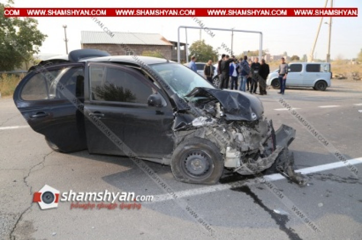 Խոշոր ավտովթար Արմավիրի մարզում. բախվել են Hyundai-ը, Nissan March-ը և Volkswagen-ը, վերջինն էլ տապալել է էլեկտրասյունը, կան վիրավորներ. ՖՈՏՈՌԵՊՈՐՏԱԺ