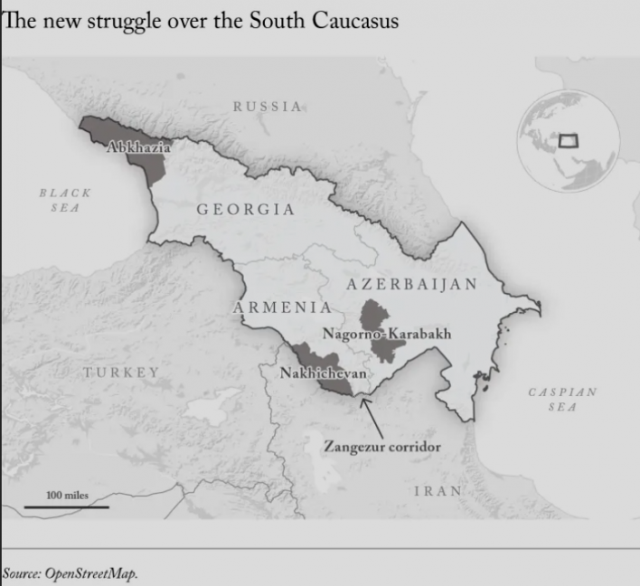▪ Մինչդեռ երկու այլ երկրներ՝ Հայաստանն ու Վրաստանը, ապրում են իրենց տուրբուլենտության ժամանակաշրջանը: Ադրբեջանի կողմից Լեռնային Ղարաբաղի գրավումից հետո ամիսների ընթացքում Հայաստանը՝ Ռուսաստանի ավանդական դաշնակիցը, կտրուկ թեքվել դեպի Արևմուտք: