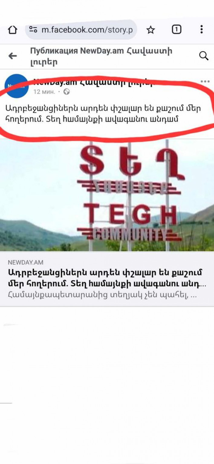 Ըստ Տեղ բնակավայրի ավագանու անդամ Մասիս Զեյնալյանի ադրբեջանցիները, որոնք օկուպացրել են Տեղ գյուղի հարակից ՀՀ տարածքները միակողմանի փշալար են քաշել՝ սահմանազատում են արել իրենց վերահսկողության տակ թողնելով Նիկոլի օրոք օկուպացված ՀՀ տարածքները...