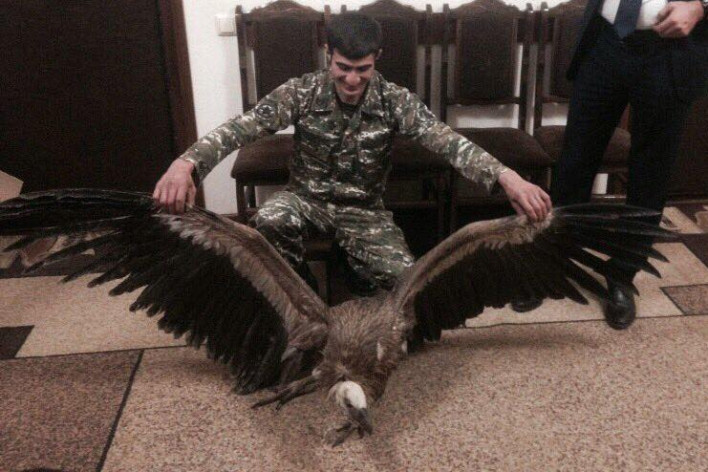 Զինծառայողները անգղին տեղափոխել են զորամասի տարածք, խնամել են, կերակրել այնուհետև վերադաս հրամանատարության մջոցով կապնվել են բնապահպանության նախարարության ներկայացուցիչների հետ: