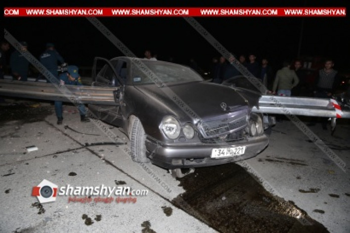 Խոշոր ավտովթար Արարատի մարզում. Mercedes-ը մխրճվել է երկաթե արգելապատնեշների մեջ. կա 4 վիրավոր. ՖՈՏՈՌԵՊՈՐՏԱԺ