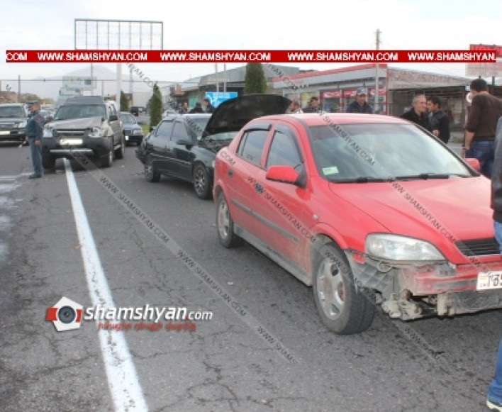 Այսօր՝ հոկտեմբերի 30-ին, շղթայական ավտովթար է տեղի ունեցել Կոտայքի մարզում: Ժամը 08:30-ի սահմաններում Երևան-Սևան ավտոճանապարհի 10-րդ կմ հատվածում՝ Աբովյանի ՃՈ անշարժ պահակակետի մոտ, բախվել են Mercedes մակնիշի 25 QC 025 համարանիշի, Mercedes մակնիշի 34 QR 946 համարանիշի, Nissan մակնիշի 88 ZG 818 համարանիշի, Opel մակնիշի 34 UR 973 համարանաիշի և Oepl մակնիշի 35 ML 637 համարանիշի ավտոմեքենաները: Ինչպես հայտնում է ֆոտոլրագրող Գագիկ Շամշյանը, վթարի հետևանքով, ըստ նախնական տեղեկությունների, բարեբախտաբար զոհեր և վիրավորներ չկան: Դեպքի վայր են ժամանել Ճանապարհային ոստիկանության 2-րդ սպայական գումարտակի 3-րդ վաշտի 1-ին դասակի աշխատակիցները՝ դասակի հրամանատար Հրանտ Գալստյանի գլխավորությամբ: Փաստի առթիվ նույն վաշտի հետաքննիչ Ավետիս Ավետիսյանի կողմից նյութեր են նախապատրաստվում: Ոստիկանությունն ու հետաքննչական բաժանմունքը պարզում են վարորդների ինքնությունը: Ծանուցում. Ենթադրյալ հանցանքի մեջ կասկածվողը կամ մեղադրվողը համարվում է անմեղ, քանի դեռ նրա մեղավորությունն ապացուցված չէ ՀՀ քրեական դատավարության օրենսգրքով սահմանված կարգով` դատարանի` օրինական ուժի մեջ մտած դատավճռով: Լուսանկարները՝ Սմբատ Պետրոսյանի