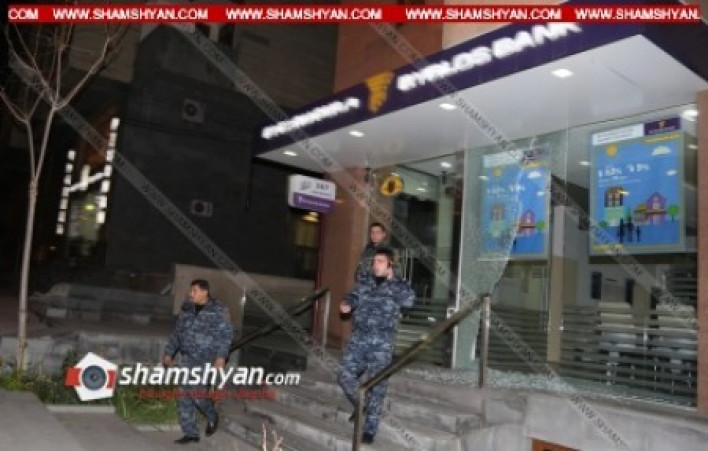 Արտակարգ դեպք՝ Երևանում. «Բիբլոս» բանկի գլխավոր մուտքի ապակին ամբողջությամբ փշրված է