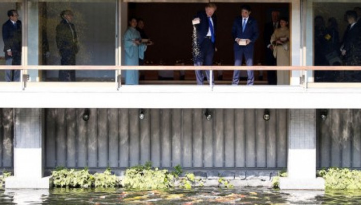 Ճապոնիայում գտնվող՝ ԱՄՆ-ի նախագահ Դոնալդ Թրամփը երկրի վարչապետ Սինձո Աբեի հետ մասնակցել է դեկորատիվ ծածանների՝ կոիների կերակրման արարողությանը: Տեսագրությունը հրապարակել է The Guardian-ը, փոխանցում է Lenta.ru-ն: Ինչպես հայտնում է աղբյուրը` Թրամփը և Աբեն գդալներով ձկների հատուկ ձկների համար նախատեսված կեր են լցրել տուփերից: Ինչ-որ պահի ԱՄՆ նախագահը արագ դատարկել է տուփը, ինչն առաջացրել է օգնականների ծիծաղը և ժպիտ պարգևել Ճապոնիայի վարչապետին:Այս մասին հայտնում է CNN-ը: