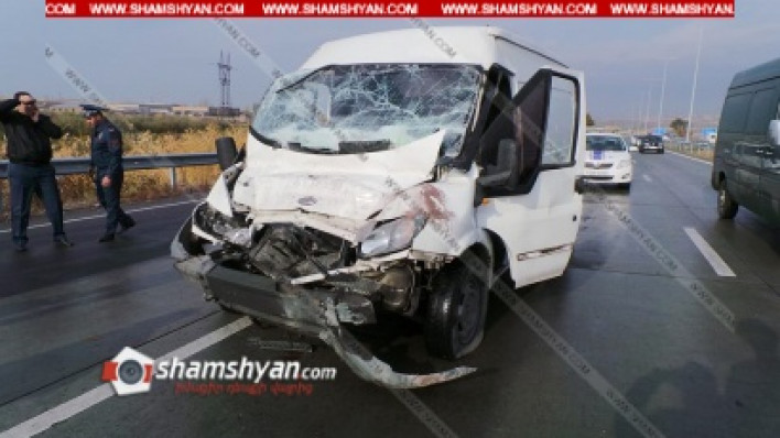 Երևան-Գյումրի ճանապարհին բախվել են Ford Transit-ն ու քարով բարձված ЗИЛ-ը. կան վիրավորներ. ՖՈՏՈՌԵՊՈՐՏԱԺ