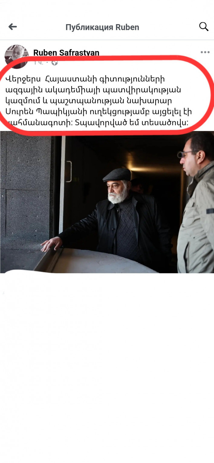 ՀՀ ԳԱԱ Արևելագիտության ինստիտուտի նախկին տնօրեն, ակսդեմիկսո Ռուբեն Սաֆրաստյանի այս գրառումն ուղղակի զարմանալի էր, այն առումով, որ նախ, պարոն Սաֆրաստյանը շատ լավ պատկերացնելով Նիկոլի թրքամետ գործունեությունը, գոնե զգուշավոր և անուղղակի քննադատել է նրա վարած այդ քաղաքականությունը, երկրորդը` գրառումը և "տպավորված" լինելը ավելի շատ մանիպուլյացիաի է նման...