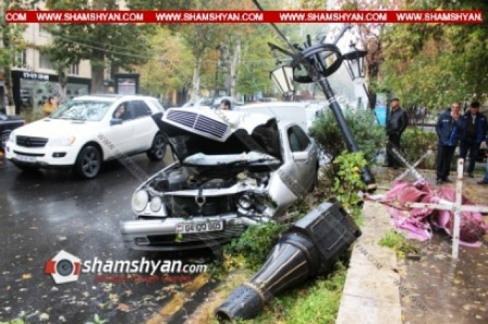 Աբովյան փողոցում բախվել են Jeep-ն ու Mercedes-ը, որը բախվել է նաև փողոցային լուսարձակին
