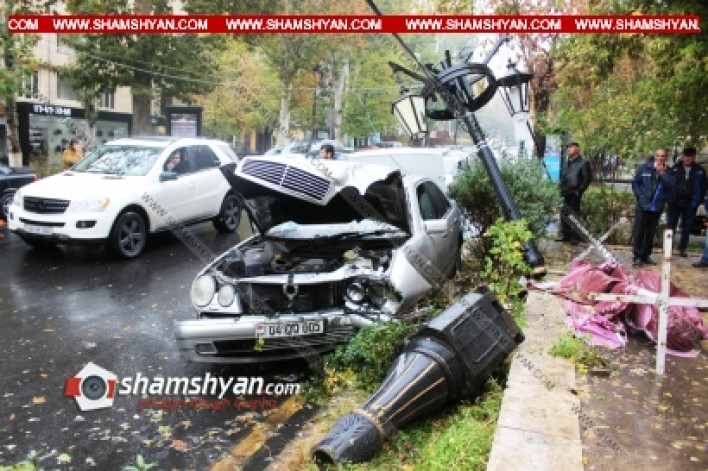 Աբովյան փողոցում բախվել են Jeep-ն ու Mercedes-ը. վերջինը բախվել է նաև փողոցային լուսարձակին և տապալել այն. ՖՈՏՈՌԵՊՈՐՏԱԺ